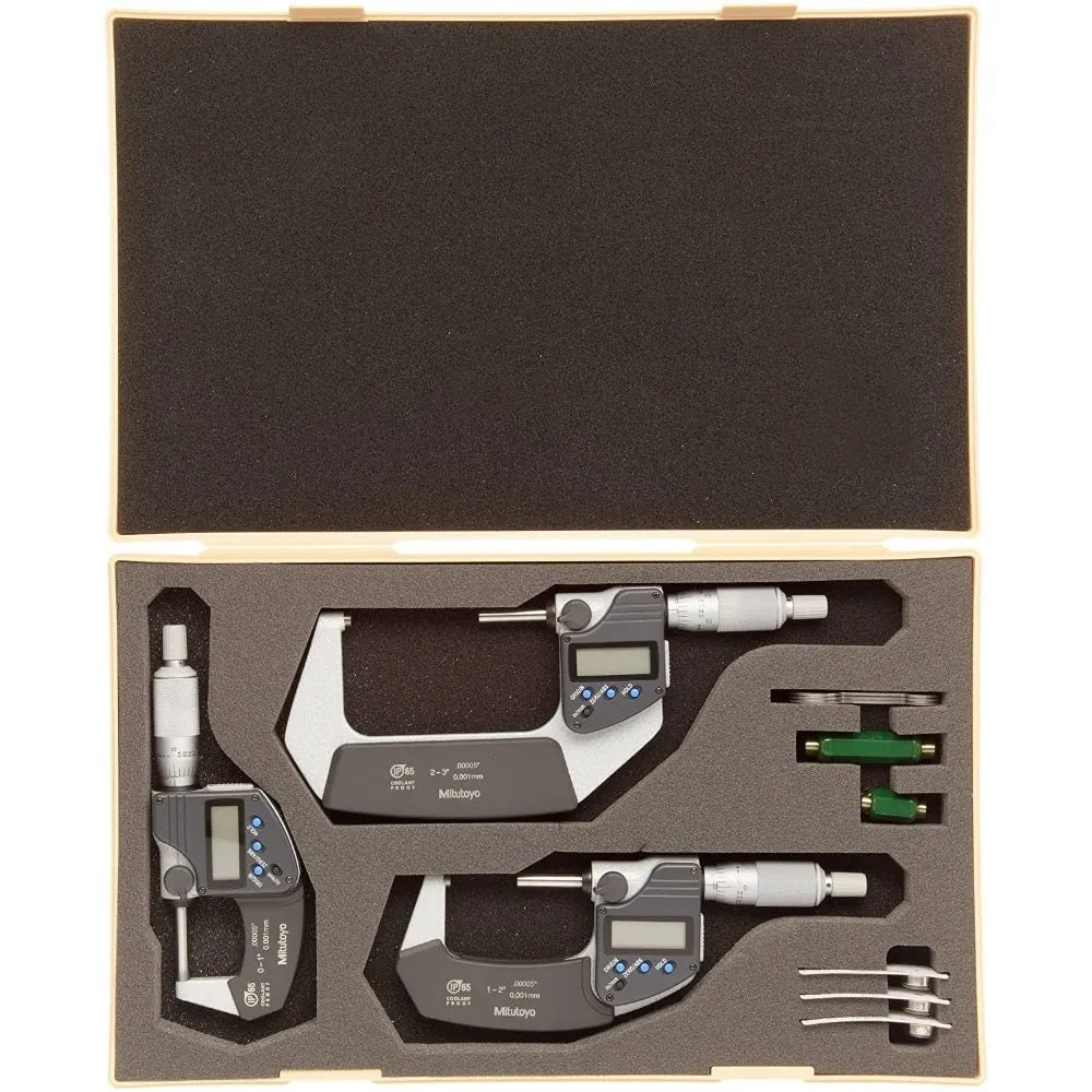 juego micrometros exteriores digitales 4 pzas., mm./pulg, rango 0"- 4"/ 100 mm.