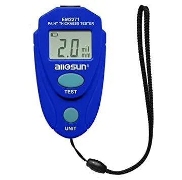 medidor digital de espesor de pintura y de plastico, rango 0-2 mm, exactitud 2% de lectura +/-0.1 mm, resolucion 0.1 mm.