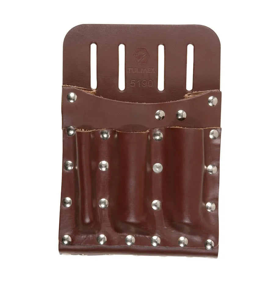 portaherramientas cuero de bovino compacto, de 6 compartimentos, dimensiones: 15 x 23 cms.