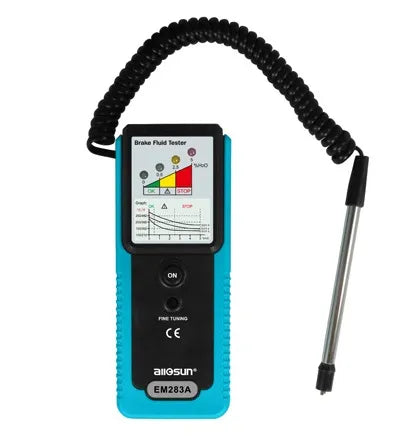 probador electronico liquidos de freno, indica si es seguro para usar o requiere reemplazo, muestra el grado de humedad que contiene el liquido, usa bateria 9 v