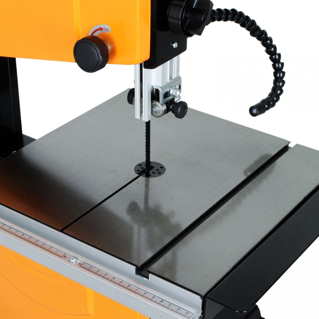 SIERRA HUINCHA PARA MADERA 10" 370W BS1001 – ALLWIN ofrece cortes precisos con una profundidad máxima de 80 mm y un ancho de hasta 195 mm. Compatible con cuchillas de 1400 mm de longitud, entre 3,5 y 12 mm de ancho. Cuenta con una robusta mesa de trabajo de aluminio fundido de 313 x 302 mm, que permite biselados de hasta 45 grados. Incluye hoja de 6,35 mm de ancho, sistema de extracción de polvo de 28 mm, guía para cortes al hilo y calibrador de ingletes para mayor exactitud.
