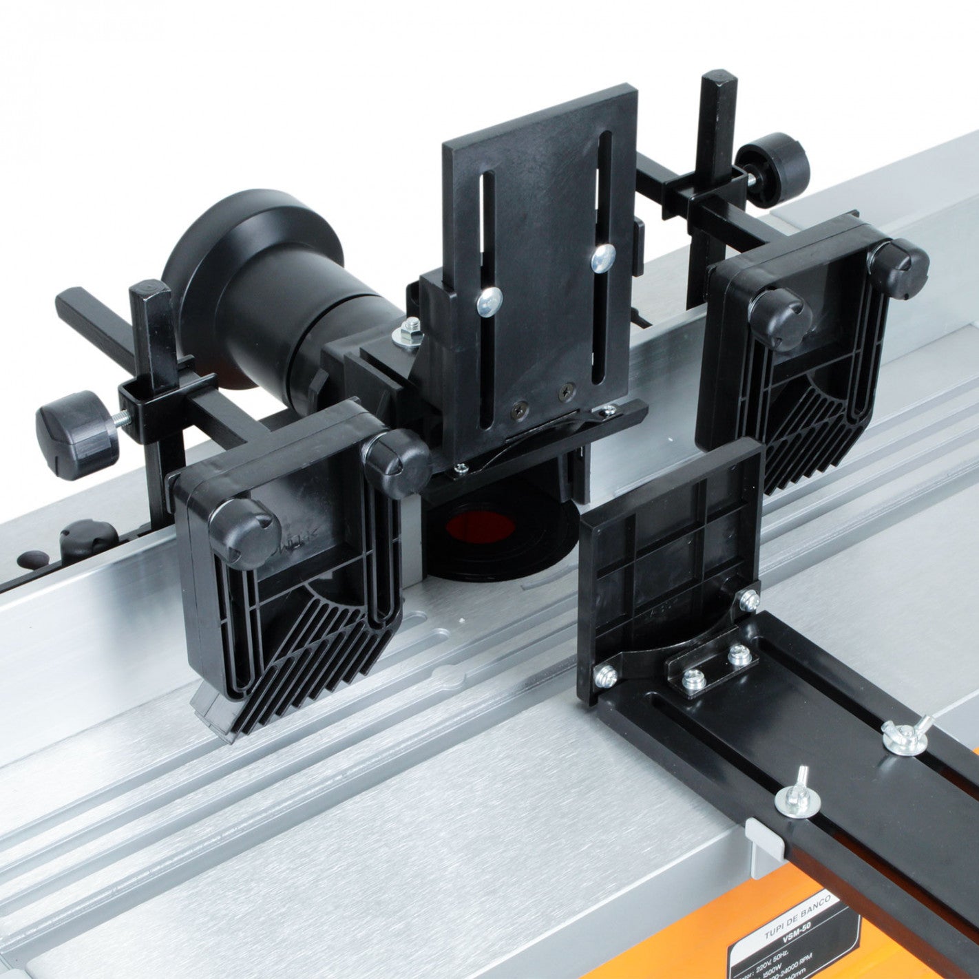 TUPI con control de velocidad variable desde 1,500 hasta 24,000 rpm. Incluye vástagos de 6, 8 y 12 mm de diámetro. Altura del husillo regulable entre 0 y 40 mm. Motor robusto de 2 HP y dos mesas extensibles para mayor comodidad y precisión.